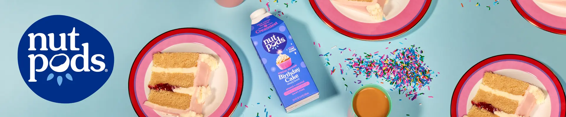 First Sweet Crème, then Vanilla and now Birthday Cake—nutpods keeps the delicious surprises coming! Sweetened with non-GMO organic cane sugar and a dash of nostalgia, this non-dairy creamer makes every cup taste like a party.